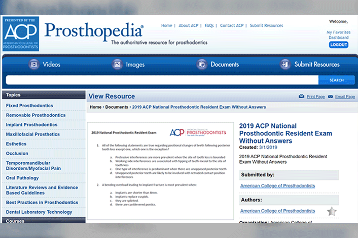 ACP members can now log in to Prosthopedia and download the 2019 National Prosthodontic Resident Exam.