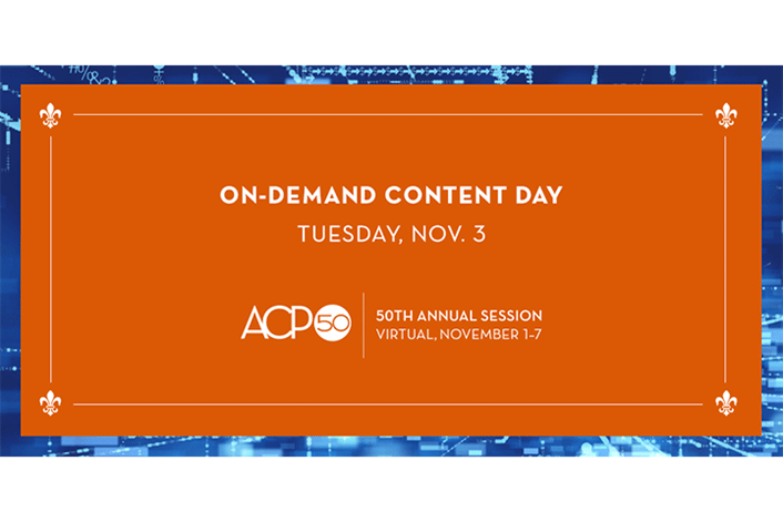 The 50th Annual Session of the ACP is taking place virtually, Nov. 1-7! The third day of Annual Session is a day to catch-up on any content you may have missed and check out content from our corporate supporters.