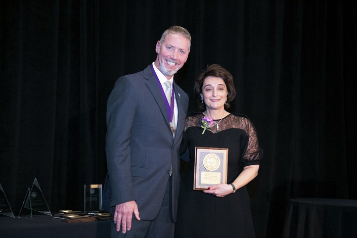 The American College of Prosthodontists (ACP) honored Dr. Leila Jahangiri with the 2022 Educator of the Year Award at the Annual Awards & President's Dinner held at the 52nd Annual Session of the ACP on Nov. 4 in Austin, TX. This award honors dental educators for outstanding contributions to the welfare and advancement of the specialty of prosthodontics, overall achievement to academic dentistry, and contributions to the sciences and health professions.