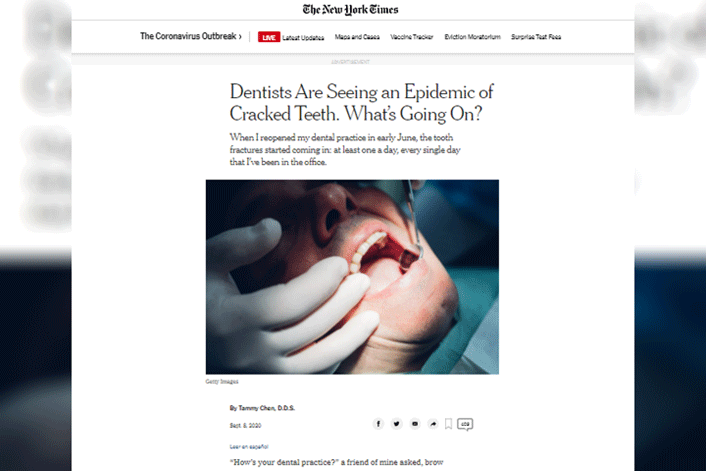 In the article, Dr. Chen discusses a phenomenon she has noticed since re-opening her practice amid the coronavirus pandemic – a sharp increase in cracked teeth. “When I reopened my dental practice in early June, the tooth fractures started coming in: at least one a day, every single day that I’ve been in the office,” Dr. Chen explains in the article.