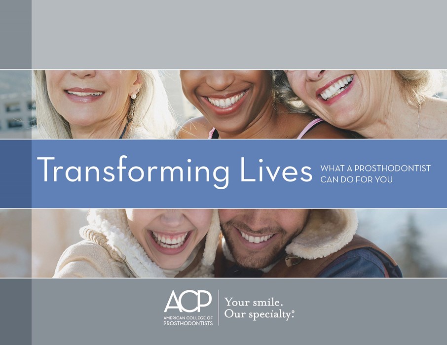 Transforming Lives: What a Prosthodontist Can Do for You is a new hardcover and e-book with 24 compelling stories that describe prosthodontic treatments in patient-friendly language.