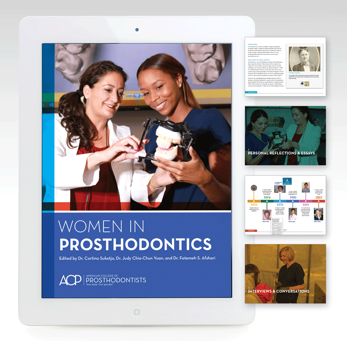 As Dr. Susan E. Brackett, the 2016-2017 President of the American College of Prosthodontists, writes in the book’s preface, “Reading these women’s stories has been inspiring. . . It is clear to me that we have made great strides in accepting and encouraging women to become prosthodontists.”