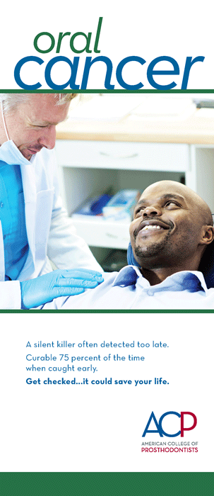 The ACP also offers a patient education brochure on oral cancer, which describes the importance of oral cancer screenings, startling facts about the severity of oral cancer, who is at risk, and warning signs patients need to know.