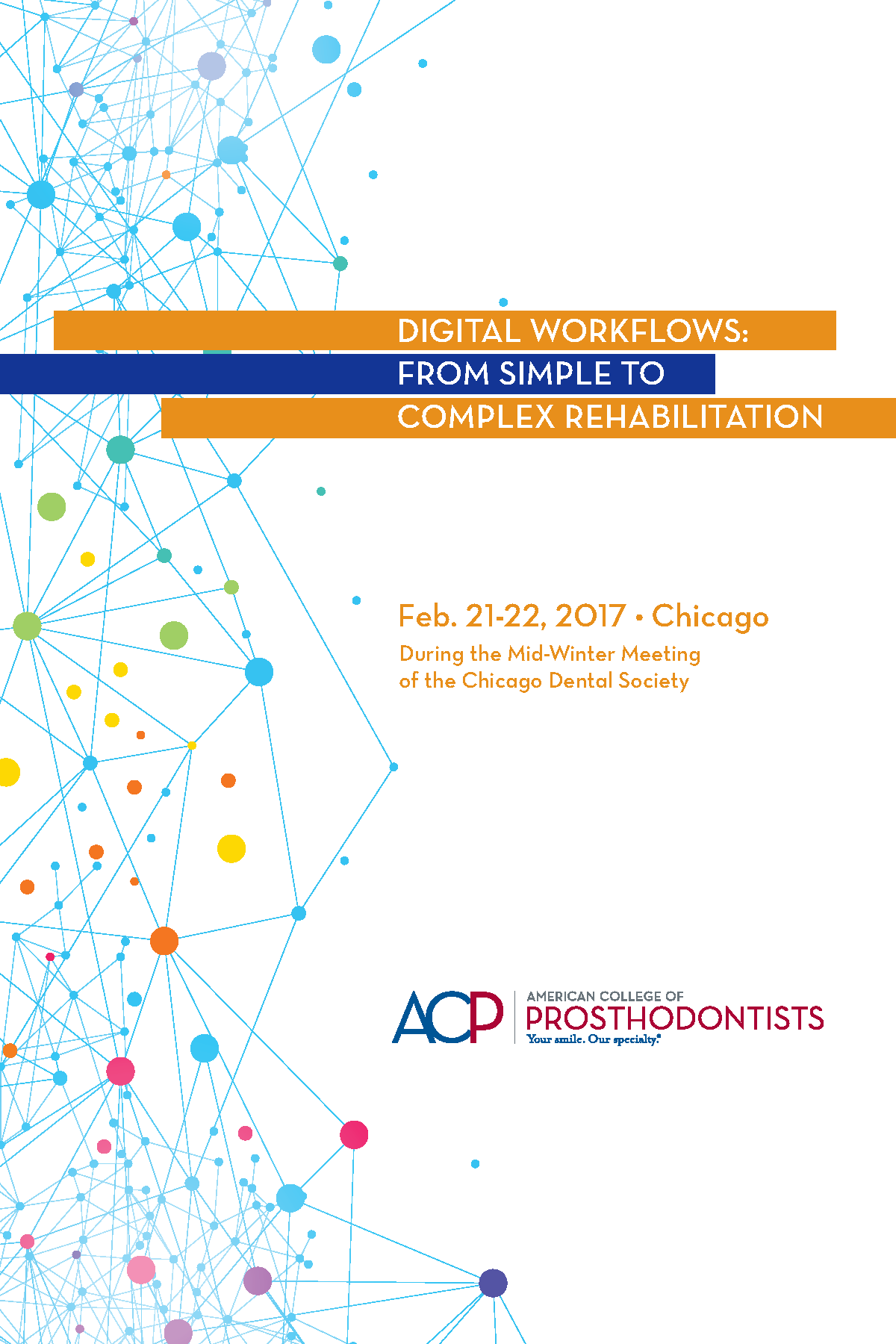 The American College of Prosthodontists is designated as an Approved PACE Program Provider by the Academy of General Dentistry. The formal continuing education programs of this program provider are accepted by AGD for Fellowship, Mastership and membership maintenance credit. Approval does not imply acceptance by a state or provincial board of dentistry or AGD endorsement. The current term of approval extends from 11/1/2014 to 10/31/2018. Provider ID# 214690