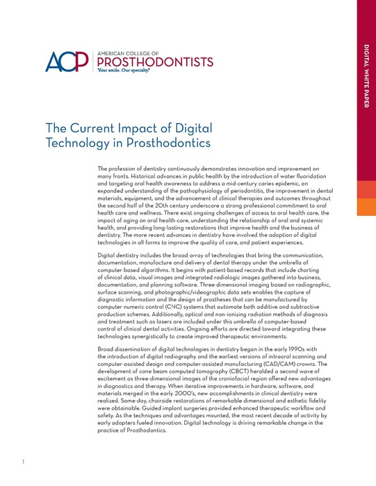 The American College of Prosthodontists is working to ensure that prosthodontists are prepared to lead the emergence of digital dentistry in clinical practice.
