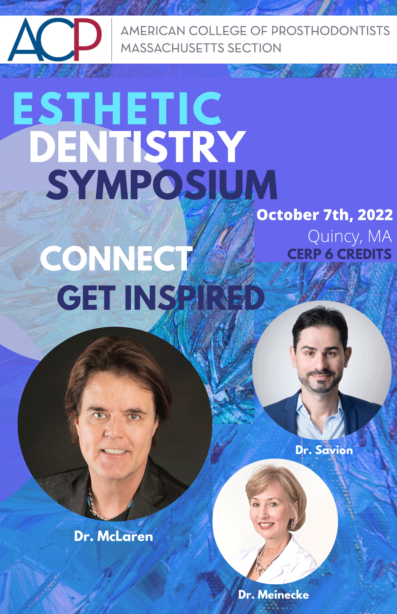 Registration is now open for the Massachusetts Section Esthetic Symposium on Oct. 7! This full-day event will take place at Granite Links Golf Club in Quincy, MA and will feature speakers Dr. Ed McLaren, Dr. Ariel Savion and Dr. Gigi Meinecke. 6 CE credits, breakfast, lunch, snacks and cocktails will be provided. For more information about the program and registration please visit our website https://sites.google.com/view/acpmasectionsymposium2022/