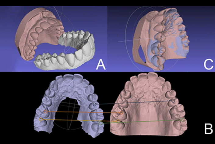 The authors selected one complete dentate patient and a complete maxillary arch vinyl polysiloxane impression was obtained. Digital scans of the patient were performed using an IOS (TRIOS 3; 3Shape) with 4 lighting conditions.