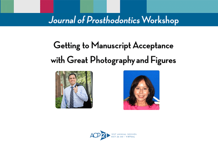 At this year’s ACP Annual Session, the Journal of Prosthodontics workshop is open to all registrants at no additional cost. The presentation is on ‘Getting to Manuscript Acceptance with Great Photography and Figures’ and will focus on how to prepare high-quality, publication-ready figures, photographs, illustrations, and tables to effectively showcase your research in publication. The workshop will also cover imaging system outputs, image size and file size requirements, legends and labeling, layout for paneled figures, preferred file types and resolution for line art (graphs, flowcharts, diagrams, etc), software, and Journal of Prosthodontics submission and publication requirements.