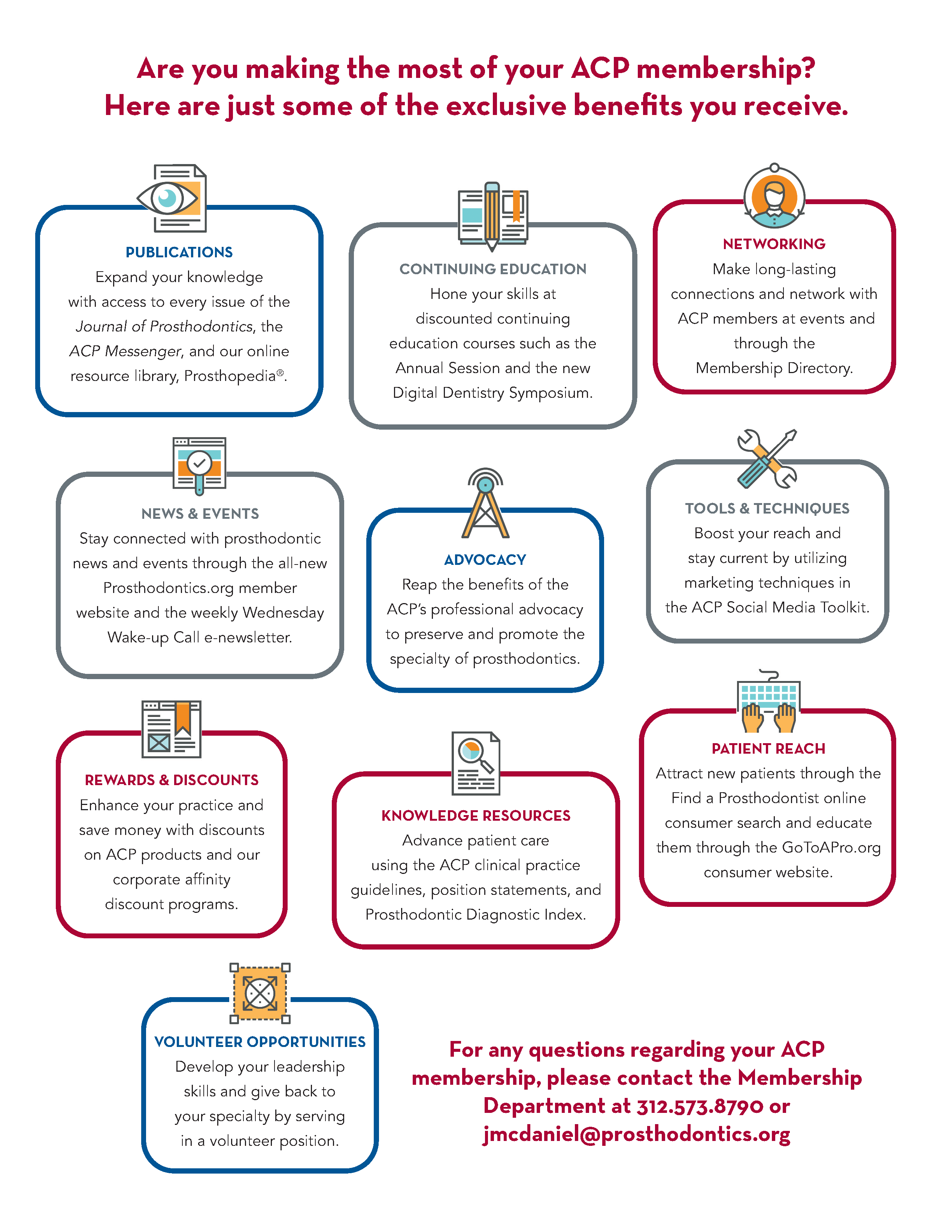 If you have any questions regarding membership within the ACP, please contact the ACP Membership Department at (312) 573-1260 or by email at acp@prosthodontics.org.
