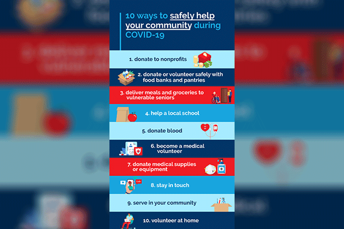 This week is National Volunteer Week, making this a great occasion to recognize the time, talent, and expertise that volunteers contribute to the ACP and ACP Education Foundation. There are also safe opportunities to volunteer in your local community, like the ones suggested by Americorps in this graphic.