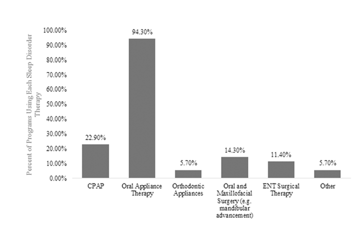 A 51 item, online survey was sent to program directors at 48 AEPPs in the United States in 2015. 24 programs (68.6%, N=35) reported not having a dedicated course for the treatment of sleep apnea and snoring disorders. The majority of programs chose to treat sleep disordered breathing with oral appliance therapy and customized sleep apnea oral devices. However, only about half of the programs that responded regularly address sleep apnea and snoring disorders at initial examination during the comprehensive exam and medical history questionnaire. The results suggest that patients are not screened enough to receive treatment addressing sleep disorders.